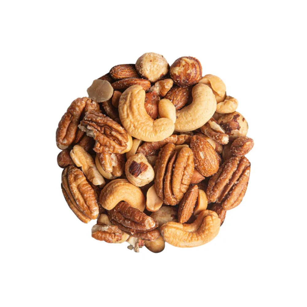 Ingredientes: Nuez mitades, Almendra ahumada, Avellana tostada, Pistache con cascara, Nuez de la india, Nuez de macadamia