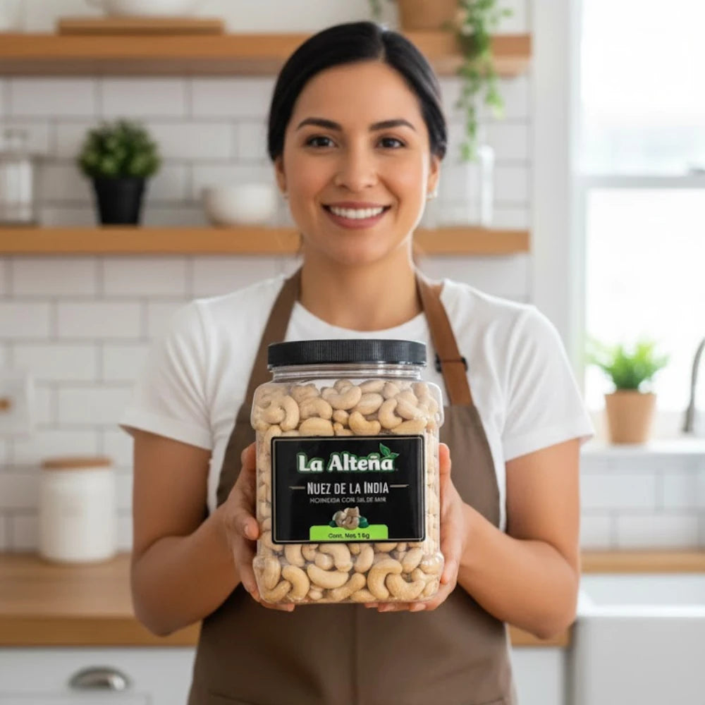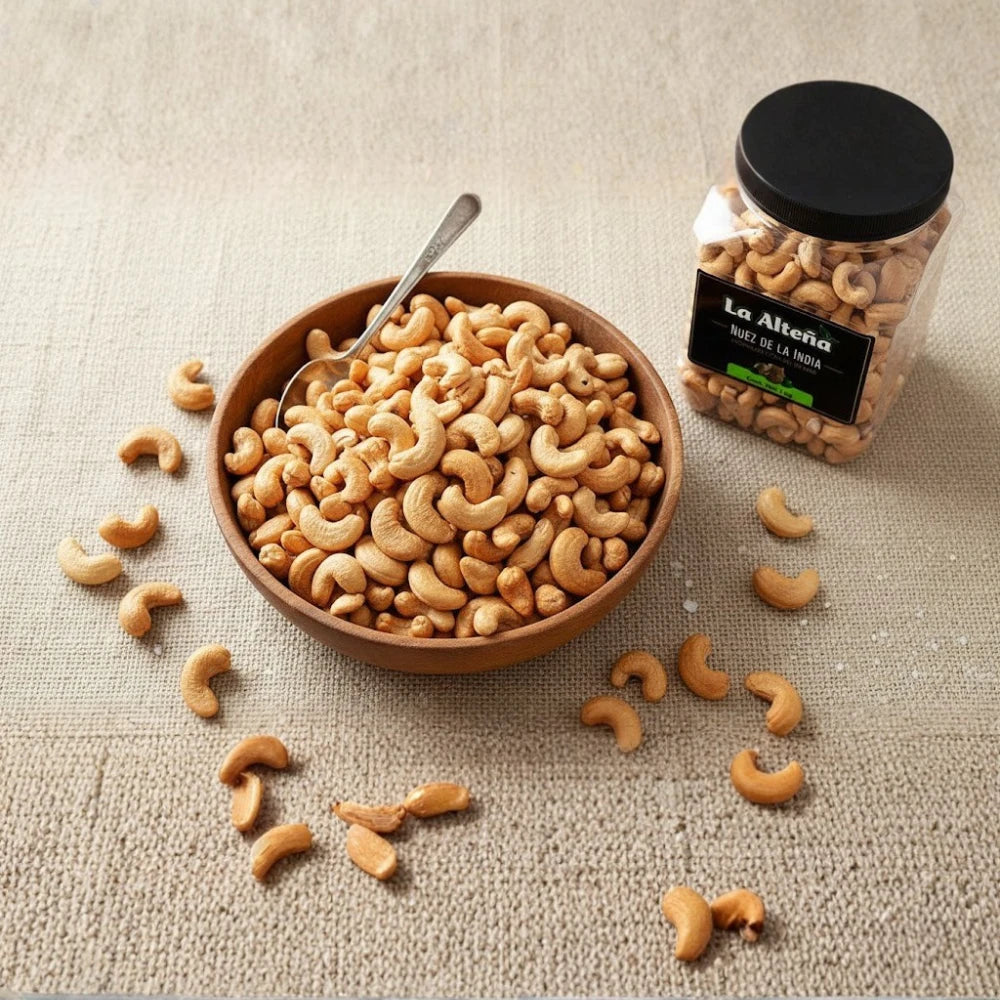Nuez de la india horneada con sal de mar, de la mejor calidad y frescura, ideal para repostería, panificación, bebidas, ensaladas o decoración.