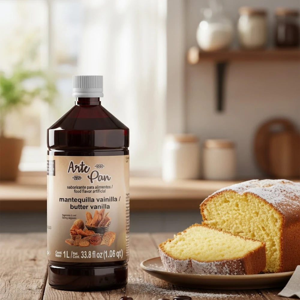 Esencia arte pan sabor mantequilla vainilla de la mejor calidad, ideal para panificación, repostería, entre otros.