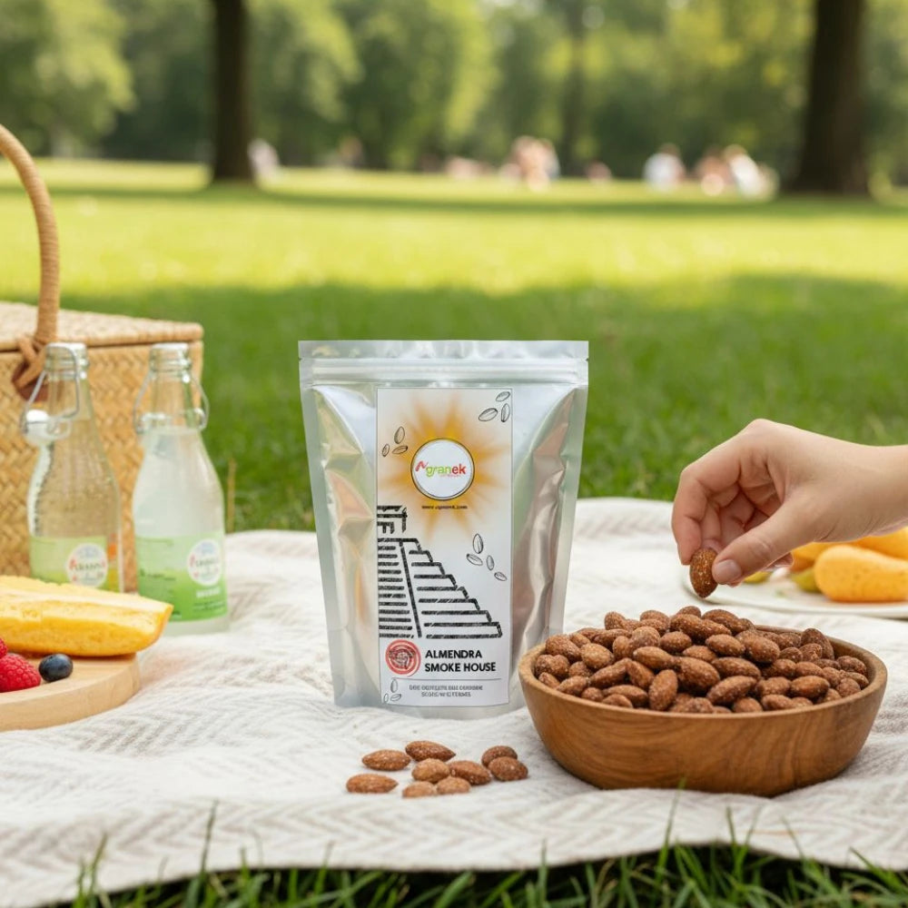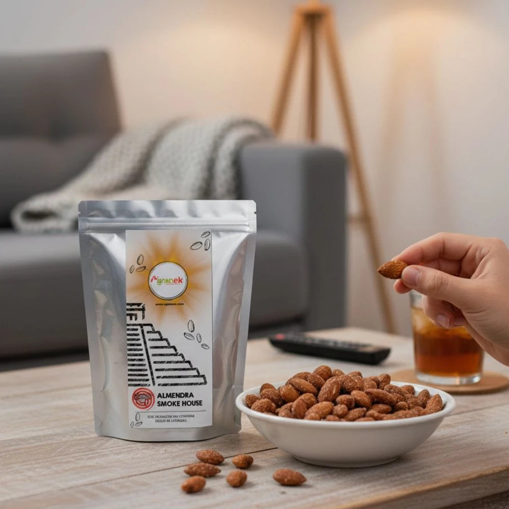 Almendra natural ahumada de la mejor calidad y frescura, ideal para consumo individual, ensaladas o decoración, entre otros.