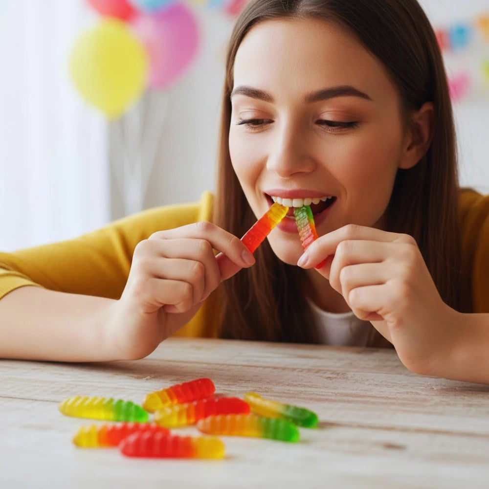 Gomitas de orugas de la mejor calidad. Ideal para postres, decoración en bebidas, snack, entre otros.