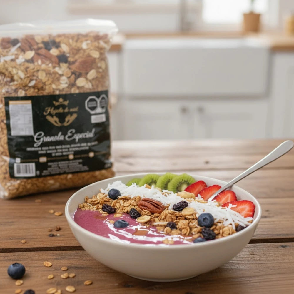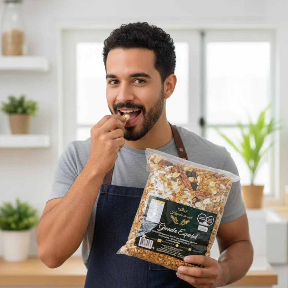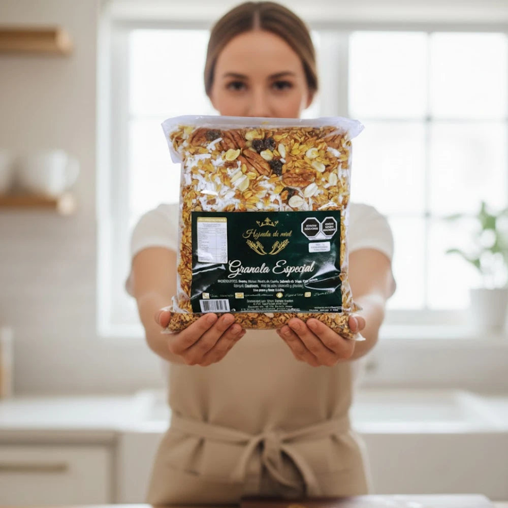 Granola artesanal de calidad premium es una fuente ideal de nutrientes y energía. Ideal para acompañar en el desayuno, ensaladas, platillos, postres, snack, botana, decoración, entre otros.