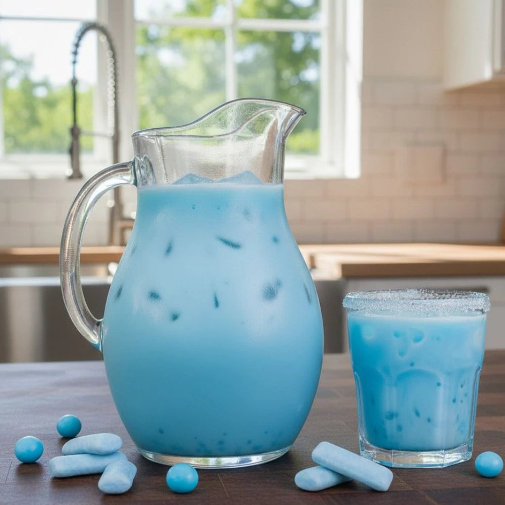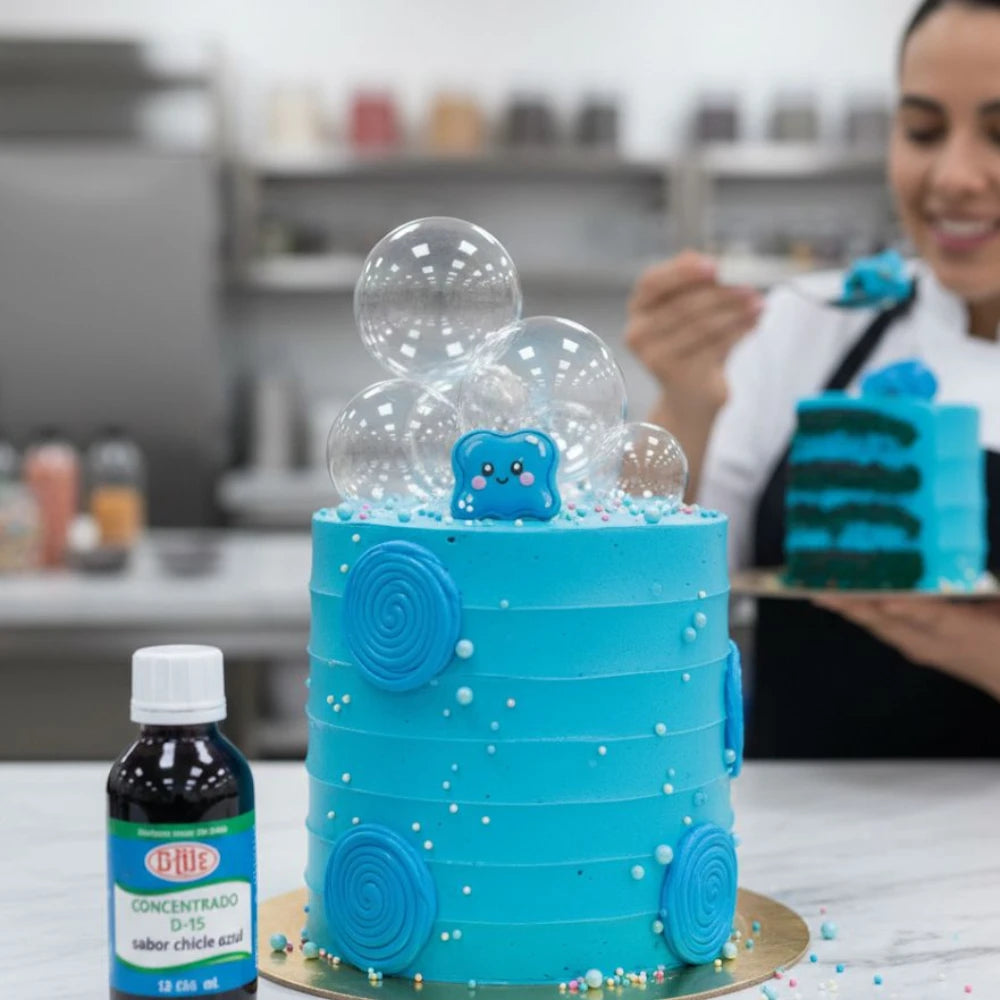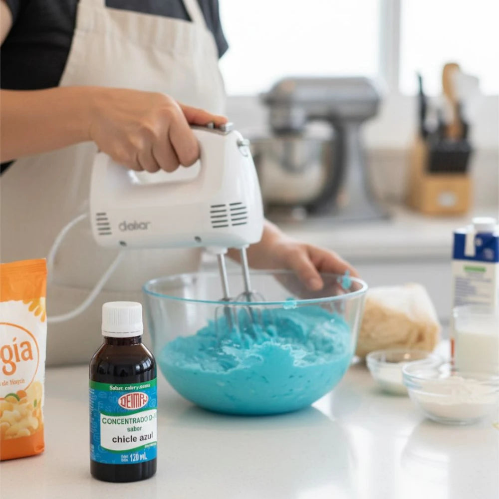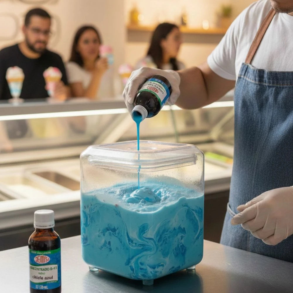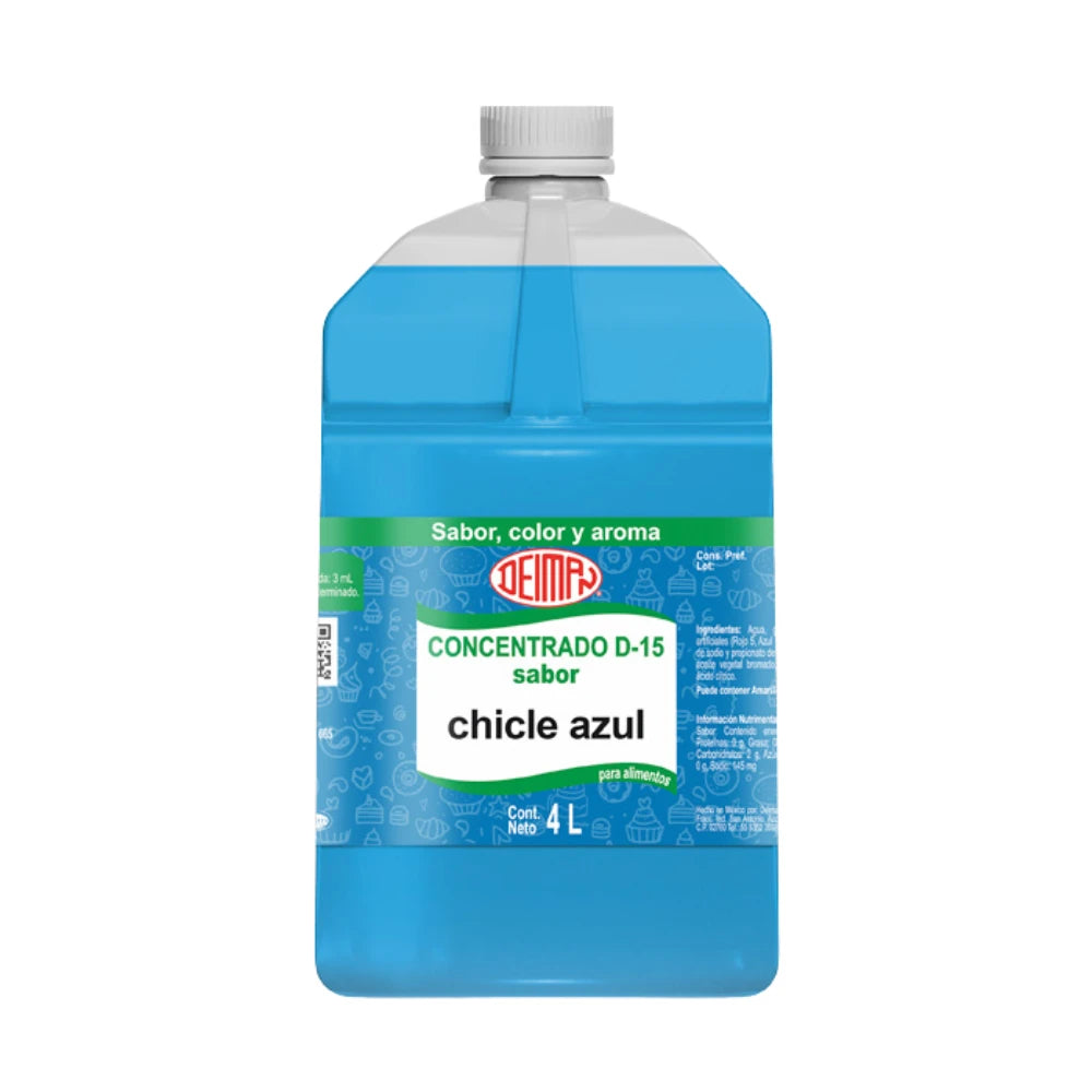 Saborizante concentrado de chicle azul de la mejor calidad ideal para fríos, congelados, aguas saborizadas, paletas, helados, gelatinas, entre otros.