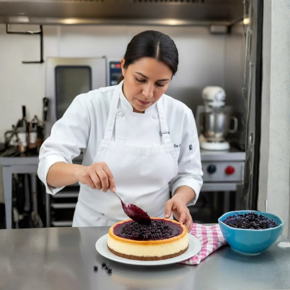 Relleno de Zarzamora lista para usar, ideal para creaciones dulces, se puede utilizar en la realización de productos de panadería, repostería en pasteles y tartas, crepas, rellenos de galletas y postres. Relleno frutal sabor zarzamora, con alta estabilidad de horneo y estable a congelación con un 25% de contenido frutal natural mexicana.